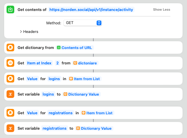 - Führe den Kurzbefehl aus, um sicherzustellen, dass er korrekt funktioniert. Er sollte die Aktivität der Instanz abrufen, einen Statustext erstellen und diesen auf Mastodon posten.